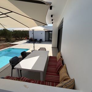 Helle Räume, klare Architektur, der Pool und der liebevoll gestaltete Garten mit Olivenhain, Obstbäumen und Kräutern – unsere Galerie zeigt Ihnen die Villa von ihrer besten Seite.